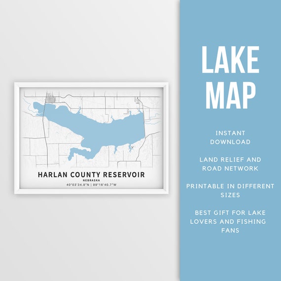 Buy Printable Map of Harlan County Reservoir, Nebraska Instant